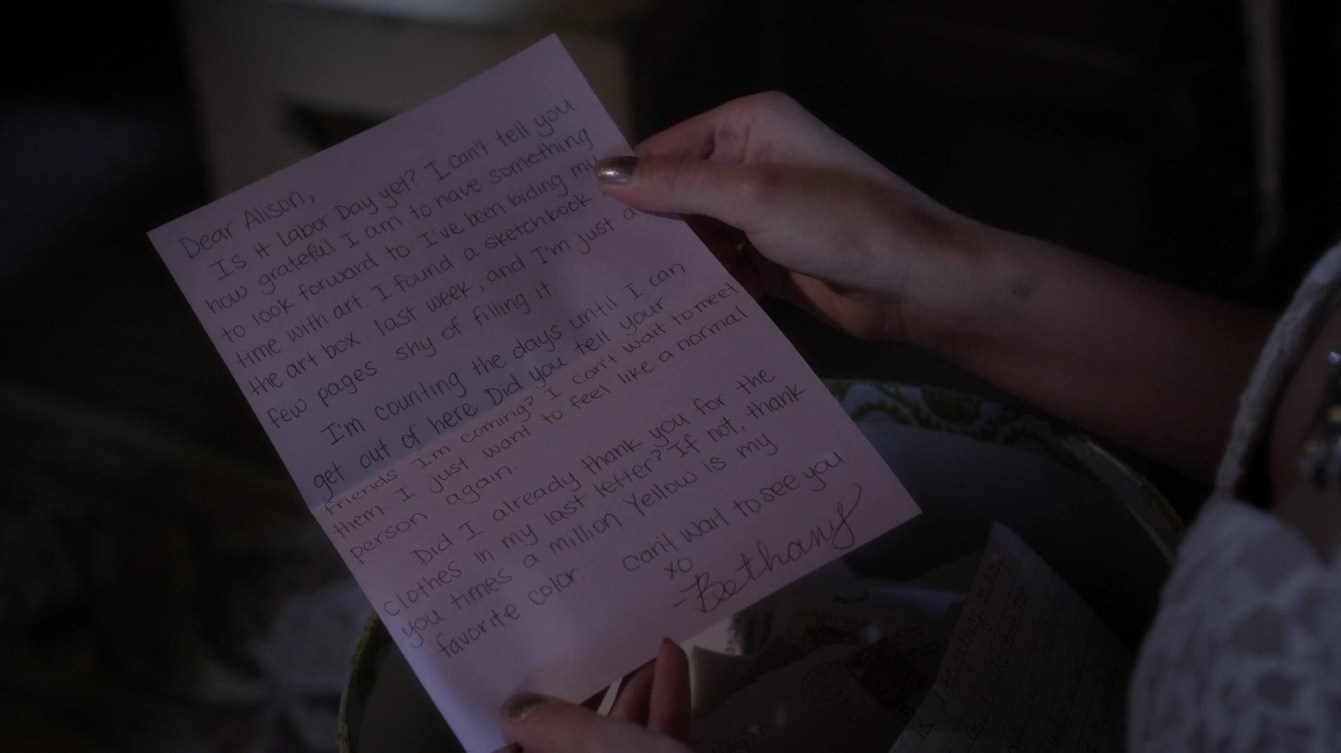 Allison trying to be nice or play a joke, and invited Charles (Bethany) to town. Bethany was so happy to find out that someone is actually on her side, and wants her to get out of Radley so she writes this letter. Until Bethany found out the truth, everything. Allison his is sister, and his parents lied to him about everything. So full of hatred, and jealousy,